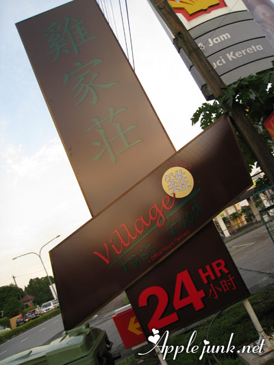 The big tall signboard of Village Fast Food, in front of Green Bento Company