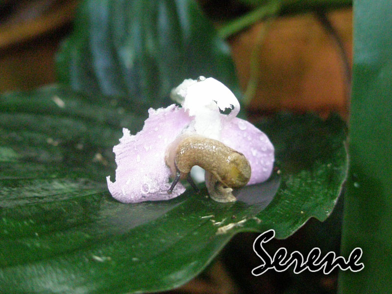Notice the purple flower above is the same flower eaten by the snail @.@ Luckily I took the flower’s photo earlier XD